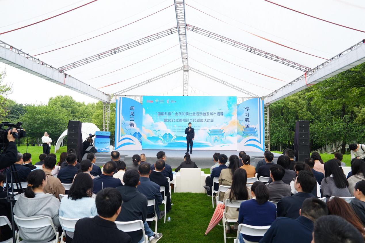 4月23日,世界读书日,“强国共读”全民阅读公益活动首发城市揭幕暨2026年衢州市全民阅读活动周在衢州258创新创业园启动。活动由“学习强国”学习平台与衢州市委、市政府共同主办,主题为“学习强国·阅见三衢”。