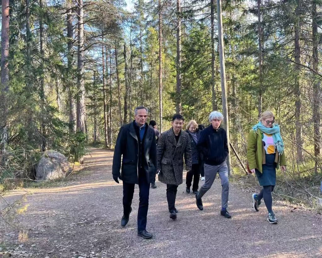 埃斯波市市长凯·米凯宁(Kai Mykkänen)与记者在Nuuksio国家公园漫步。