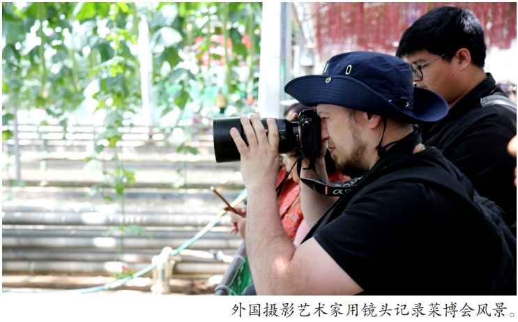 “很难想象农业可以和艺术、科技结合得这么好!”多位外籍摄影师在蔬菜雕塑前不停按下快门,直言要把寿光农业的故事分享给全世界。据了解,本次活动有外籍摄影艺术家、国内知名摄影师、媒体摄影记者代表共30余人参与,他们一边记录下蔬香满园的盛景,一边深入交流“寿光模式”的创新经验,让寿光菜博会的影响力通过镜头传递到全球各地。
