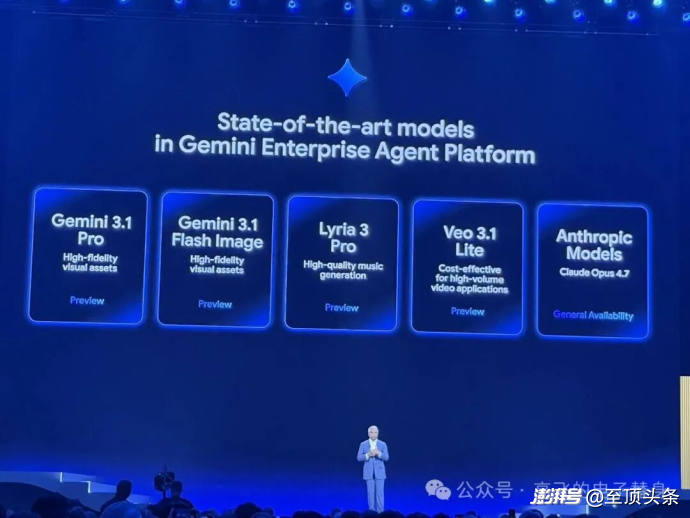 选择芯片和模型的自由,当天的平台同时提供自研TPU 8和NVIDIA Vera Rubin NVL72,模型层并行支持Gemini 3.1 Pro与Anthropic Claude Opus 4.7;