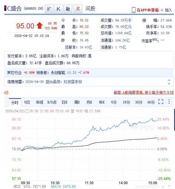 盛合晶微报95.00元/股