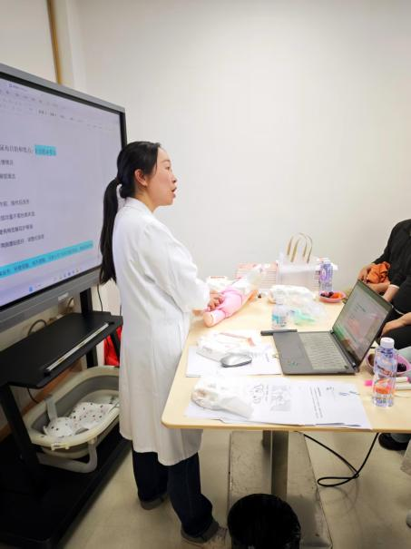 纸上得来终觉浅,绝知此事要躬行。光有理论储备还不够,能否从容地完成日常护理才是真正的“硬指标”。在随后的实操环节中,上海市儿童医院感控办宋莉莉老师带来了极具趣味性的“新生儿沐浴与换尿布”游戏化教学。