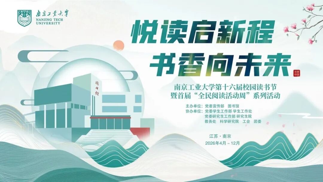本届读书节主题是“悦读启新程 书香向未来”,聚焦推进阅读推广与文化育人,分阶段推出各类书展、文化展、艺术体验、阅读报告发布、深阅读活动等贯穿全年的系列活动,同时组织师生参与市委宣传部指导的 “AI 读城,爱读城” 南京校园创造营活动,兼顾了阅读、展览、沉浸式体验等多维度文化需求,厚植南京工业大学校园文化底蕴。