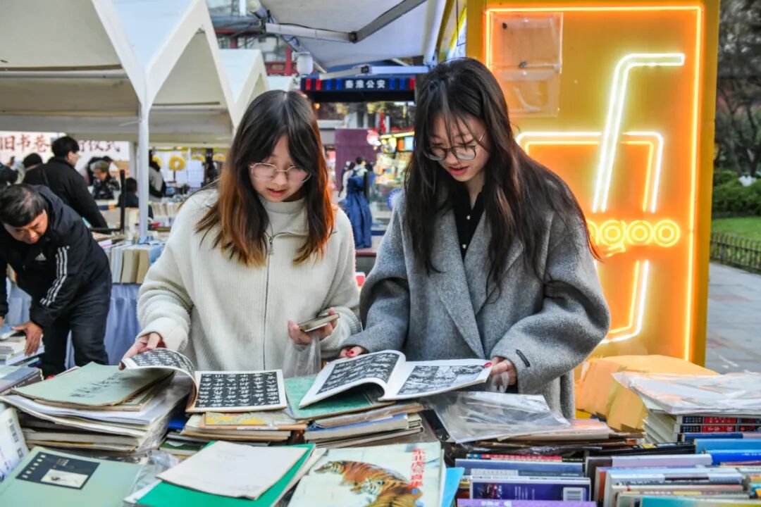 在“夫子庙旧书巷”,市民在桨声灯影中,可以游秦淮、淘旧书、交书友、赏非遗,体验“书旅融合”的文化盛宴。