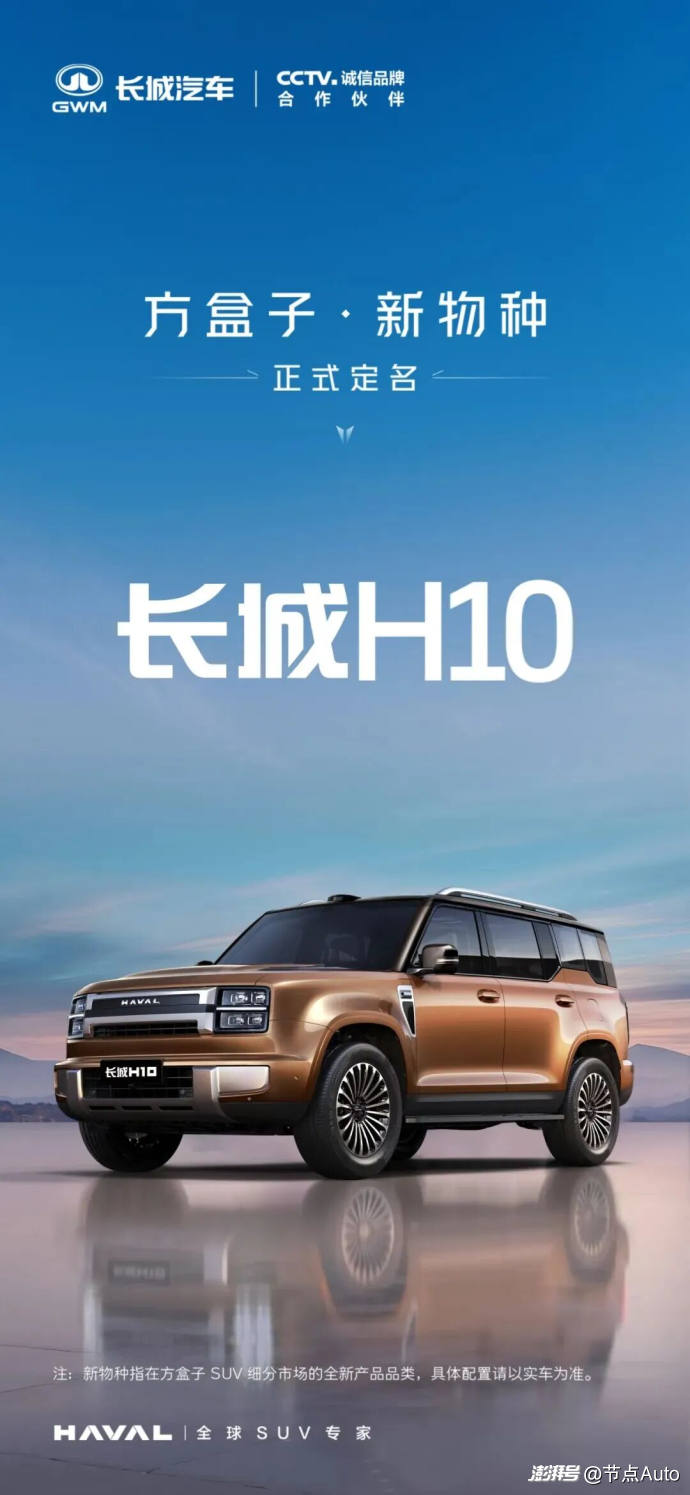 据《节点Auto》了解,长城汽车哈弗品牌最新旗舰SUV长城H10,将在本次北京车展全球首发。