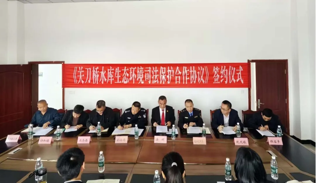 在各方代表的共同见证下,八家单位负责人依次签署了《合作协议》。该协议的签署,标志着关刀桥水库区域生态环境保护的“府院联动”机制进一步完善,为凝聚执法司法合力提供了坚实的制度基础。