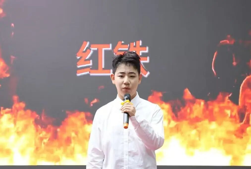 任丘市第四中学学生朗诵《红铁》。张圆圆 摄