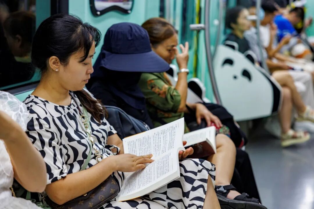 市民在地铁车厢里读书