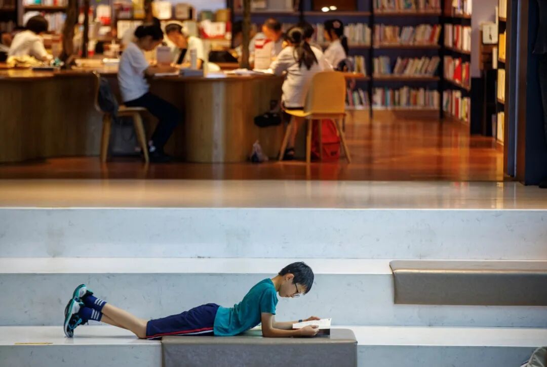 一位少年在文轩Books书店俯身读书 李冬 摄