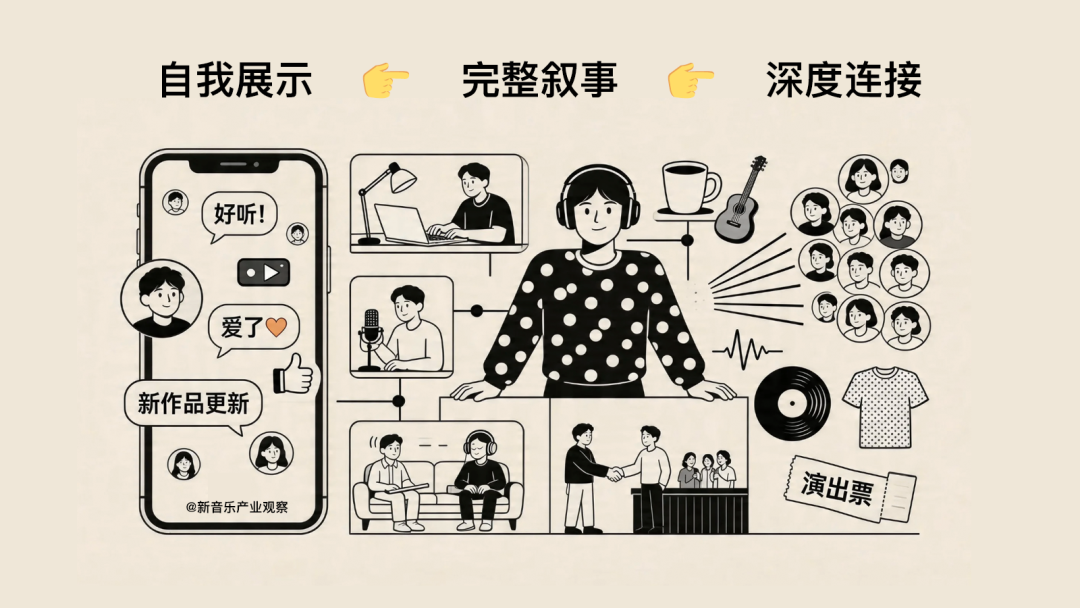 因此,我们认为,在AI普及已成大势所趋的当下,音乐人不能再满足于仅停留在播放量、榜单成绩与平台曝光所构成的“数据层”,而更需要主动建立与受众之间可持续的真实关系。
