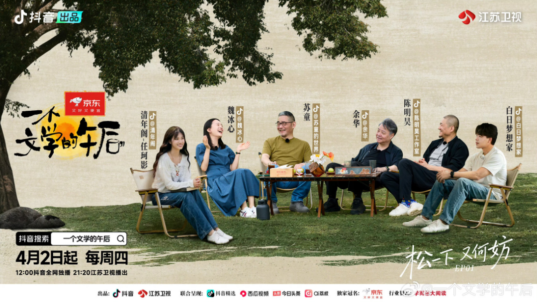 这也是颜小可在策划阶段就想清楚的:文学发生在节目之外。他认为,节目的全部内容不是10期正片,“正片+卡段+嘉宾自己发的抖音+下面的评论+媒体的报道”等等,全部加起来组成的生态,才是《一个文学的午后》。