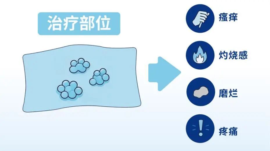 尖锐湿疣现有治疗方法均为局部治疗,可能出现局部皮肤的瘙痒、烧灼感、糜烂和疼痛等反应【4】。且尖锐湿疣容易复发,需长时间反复治疗:一项2022年基于哨点医院的调查研究显示【8,d】,疣体治疗清除后6个月内复发率*为26.98%(174/645)。