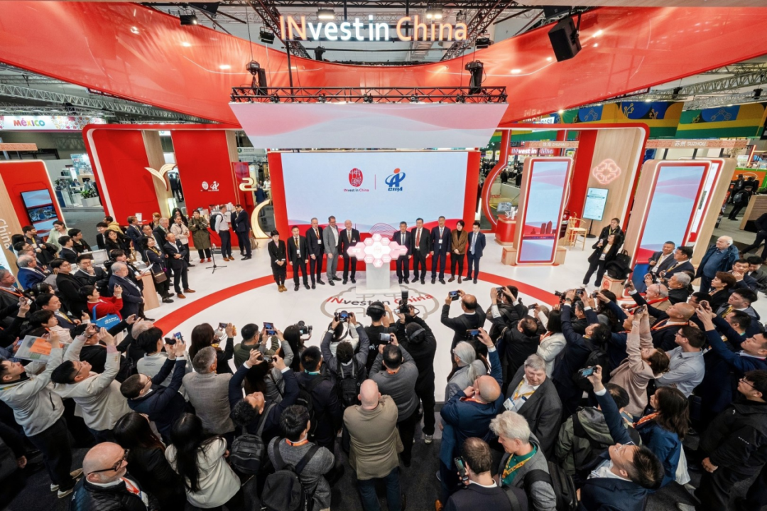 “投资中国”启动仪式现场吸引全球客商驻足。