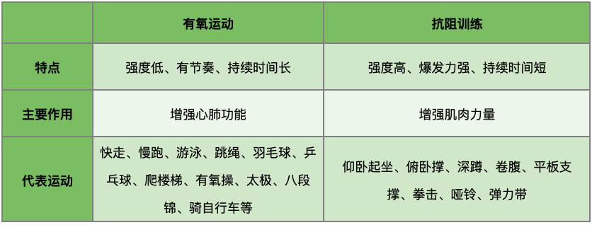 有氧运动和抗阻训练对比表