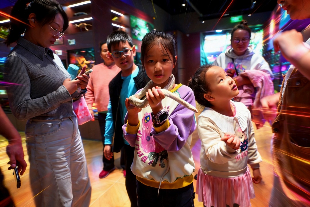 投喂新喀里多尼亚岛的蜥蜴、触摸澳洲姥爷树蛙、近距离观察捕鸟蛛……在南京城北某大型购物中心,记者发现了一家名为“龙与我 神奇动物主题乐园”的异宠体验店。店铺宛如小型热带雨林,分为展示区和体验区:展示区玻璃柜里陈列各类活体异宠及文创;体验区里,小朋友在店员讲解下正在与小蛇亲密互动。独特业态成为亲子家庭打卡地,周末午后客流更是到达顶峰。