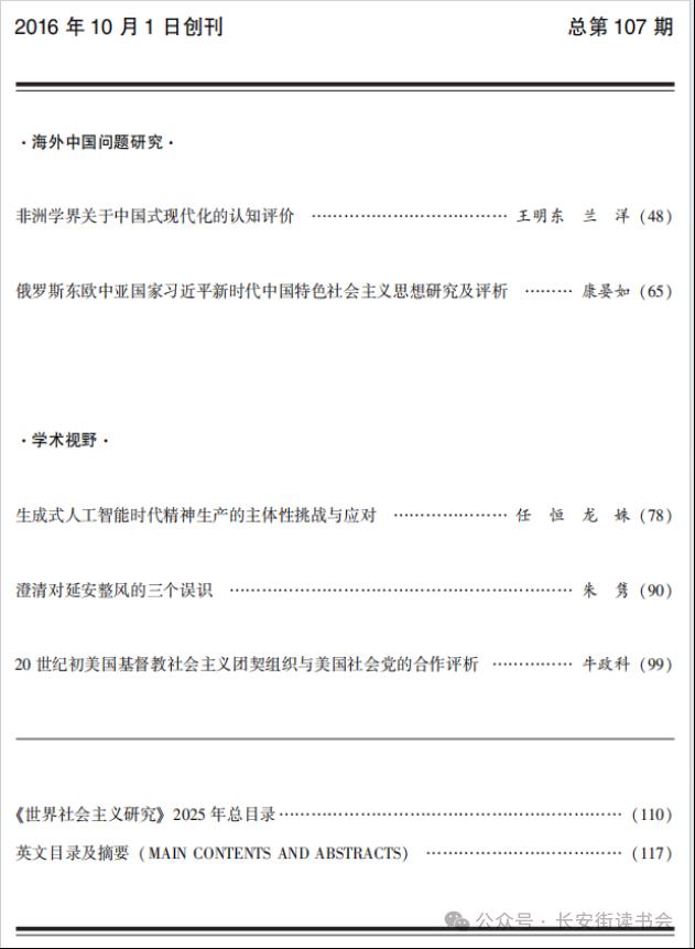 主办单位:中国社会科学院马克思主义研究院;社会科学文献出版社