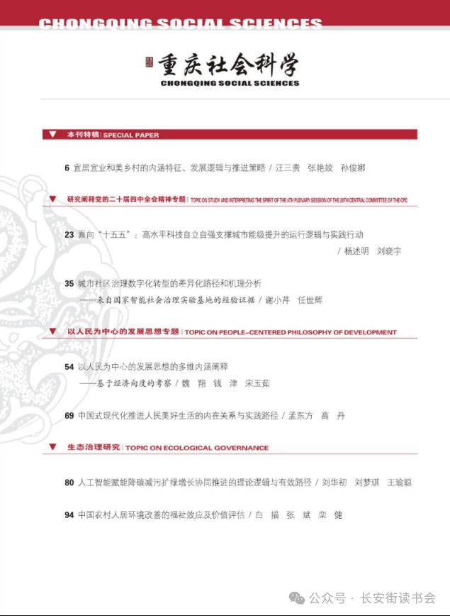 汪三贵、张艳姣、孙俊娜在《重庆社会科学》2025年第11期撰文《宜居宜业和美乡村的内涵特征、发展逻辑与推进策略》指出,中国要美,农村必须美。建设宜居宜业和美乡村,是党中央着眼于实现乡村全面振兴和中国式农业农村现代化作出的重大战略部署。在分析宜居宜业和美乡村内涵特征的基础上,从历史逻辑出发,系统回顾我国“和”理念的历史渊源及乡村建设行动的演进历程;从理论逻辑出发,基于复合生态系统理论、农业农村现代化理论、农业多功能性理论和城乡融合发展理论阐述宜居宜业和美乡村整体规划与实现路径的理论来源;从实践逻辑出发,分析建设宜居宜业和美乡村的现实意义、实践成效和存在的短板。以此提出宜居宜业和美乡村的推进策略:坚持系统思维,科学做好顶层设计;坚持“人和”思想,促进多方合作共赢;坚持“天人合一”,实现资源优势转化。同时,注重把握好城乡建设的模仿与特色、用地需求的满足与保护、政府作用与市场机制等几对辩证关系。