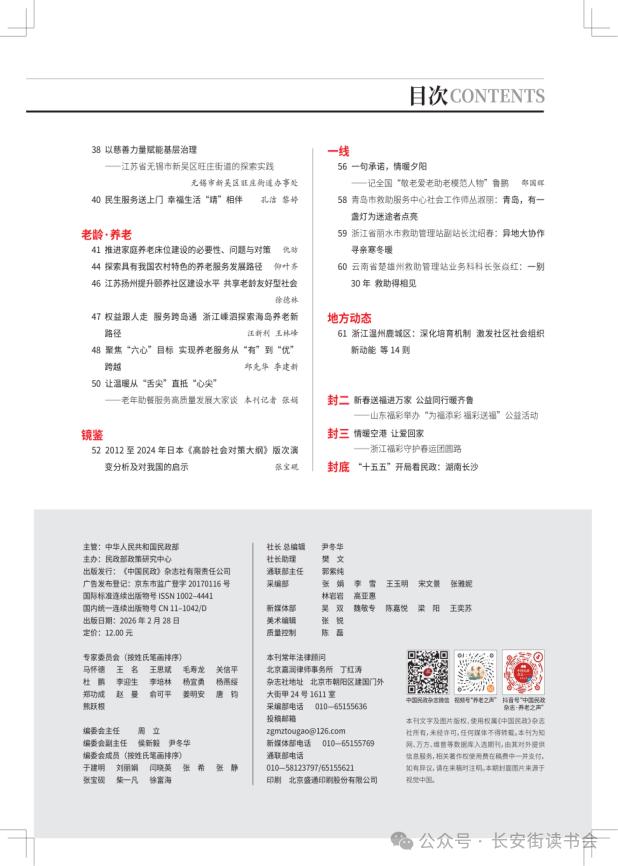 仇昉在《中国民政》2026年第4期撰文《推进家庭养老床位建设的必要性、问题与对策》指出,随着我国人口老龄化程度持续加深,失能失智老年人已超过4500万,发展家庭养老床位成为应对养老服务刚性需求、整合医养资源的重要举措。该模式通过整合社会化与家庭照料资源,能有效缓解家庭照护压力。但目前建设仍处于起步阶段,存在顶层设计缺失、配套制度滞后、服务供给不足、资源统合乏力等问题。推动家庭养老床位高质量发展需做到:一是以制度建设为根本,完善顶层设计。健全政策法规体系,全面落实长护险制度,将床位布局纳入城市总体规划,建立统一的老年人能力评估标准及互认机制。二是以现实需求为导向,促进供需精准适配。细化服务对象分类,主动挖掘不同群体需求,在夯实生活照护基础上拓展慢性病管理、康复护理等专业服务。三是以科技赋能为支撑,优化资源配置。依托信息化平台监测健康数据,通过智能设备降低人力成本,利用服务记录强化监管。四是以资源整合为抓手,构建协同服务网络。强化政府主导,推动家庭养老床位与家庭病床深度融合;发挥市场作用,培育品牌化主体;夯实家庭基础,通过护理补贴、照料假期等措施弘扬孝文化;激发社会参与,形成多方协同格局。