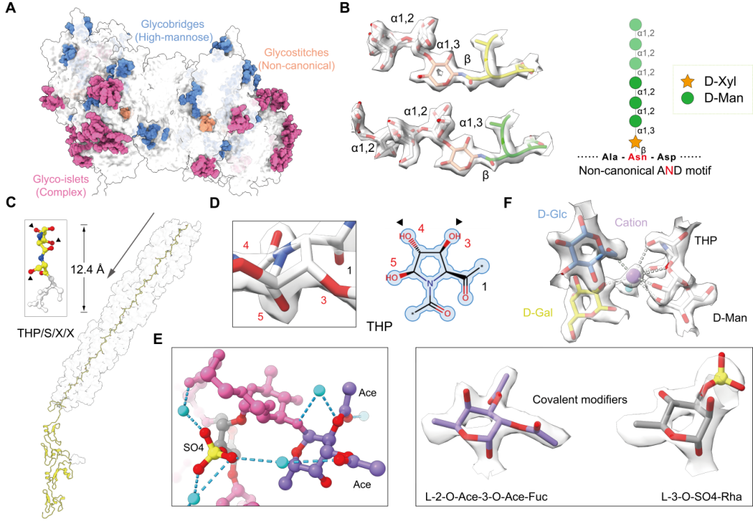 图1. 高分辨率冷冻电镜解析揭示管状纤绒毛中结构 N-和 O-糖质
