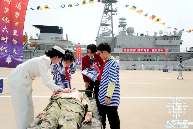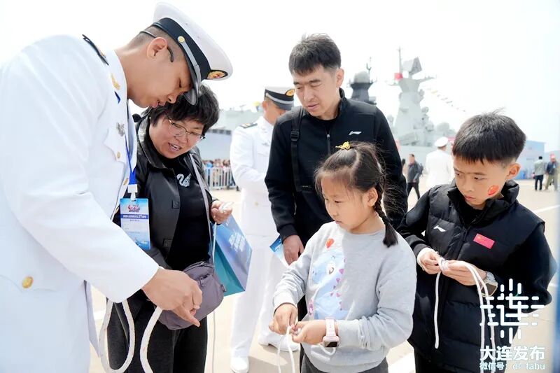 4月23日,北部战区海军某部牵头驻地海军部队,在旅顺某军港开展舰艇开放活动。新型导弹护卫舰鄂尔多斯舰、远洋航海训练舰郑和舰、扫雷舰青州舰三艘舰艇满旗猎猎,以海军最隆重的礼仪迎接社会各界登舰参观。