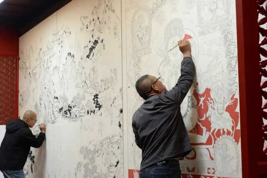 值得一提的是,展览还专门开辟了壁画临摹展示区,邀请“非遗”传承人现场绘制壁画,真是大开眼界!