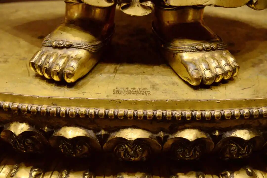 莲座前沿还有一个重要的细节,以汉、藏、梵三种文字镌刻的“大明永乐年施”款识。