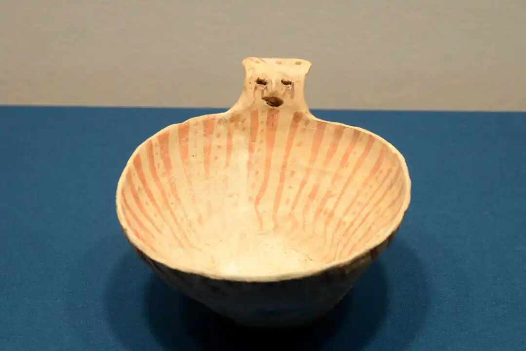 新石器时代宗日文化 | 人面纹带柄彩陶碗