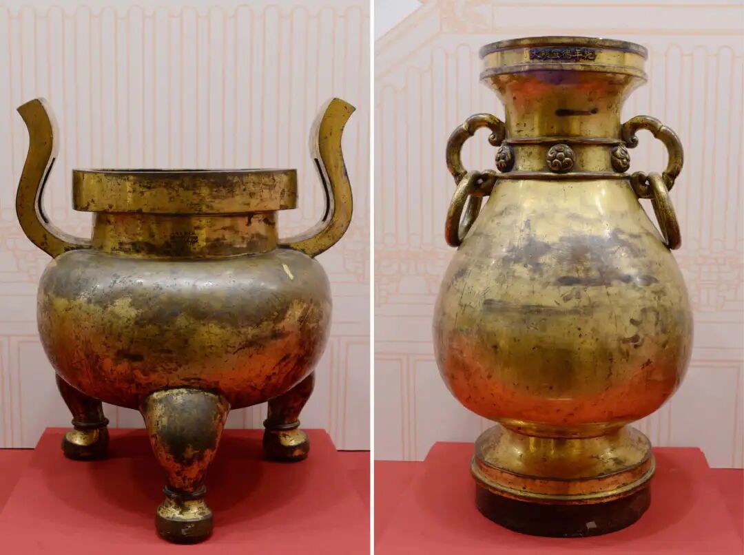 明 | 永乐款鎏金铜三足香炉、宣德款双耳活环鎏金铜瓶