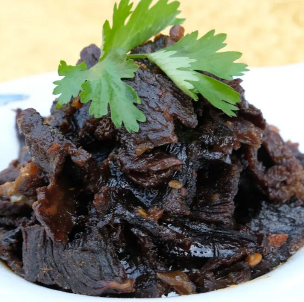 外酥里嫩,咸鲜诱人。每一片牛肉都在热油中完成了蜕变,是下酒又下饭的硬菜。
