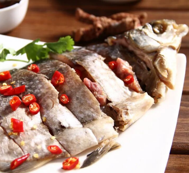 “鱼肉双鲜,扁鱼不扁”。在扁鱼腹内填封猪肉,经腌制卤泡而成。省级非遗的美味,吃的是民间工艺的智慧。