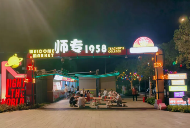走进“师专1958”,香气是唯一的向导。秘制小肉串在炭火上滋滋冒油,炒面炒饭在铁锅中翻腾出锅气。这里不仅是味蕾的盛宴,更是青春的剧场。