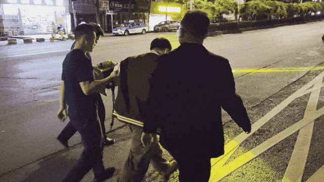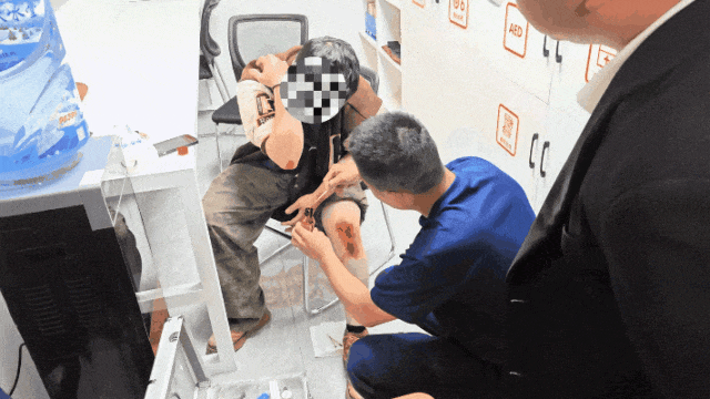 2024年11月25日上午9时许,综保路消防救援站门口突发交通事故,摩托车与拐弯面包车相撞,驾驶员倒地无法动弹。消防员迅速将其背至岗亭,披上战斗服保暖,简单处理伤势后移交给120医护人员救治。