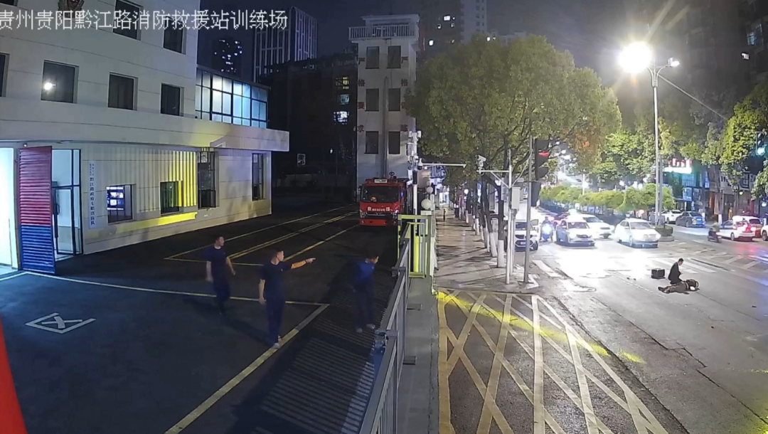 2025年9月18日,贵阳南明区花溪大道北段,一名七旬老人摔倒在松花南路消防救援站门口,虽然意识清晰,但脸部着地、左脸肿胀流血。站岗的消防员见状立即将老人扶起,协助民警联系家属,拨打120送医治疗。