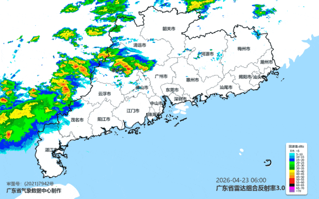 今天(4月24日),受广阔的降雨云系影响,广东的南部市县仍有中到大雨局部暴雨,其余地区有分散阵雨;预计周末(25-26日)广东降水明显减弱,大部市县阵雨转多云,早晚有轻雾或雾,气温回升。27日起,广东又有新一轮降水过程。