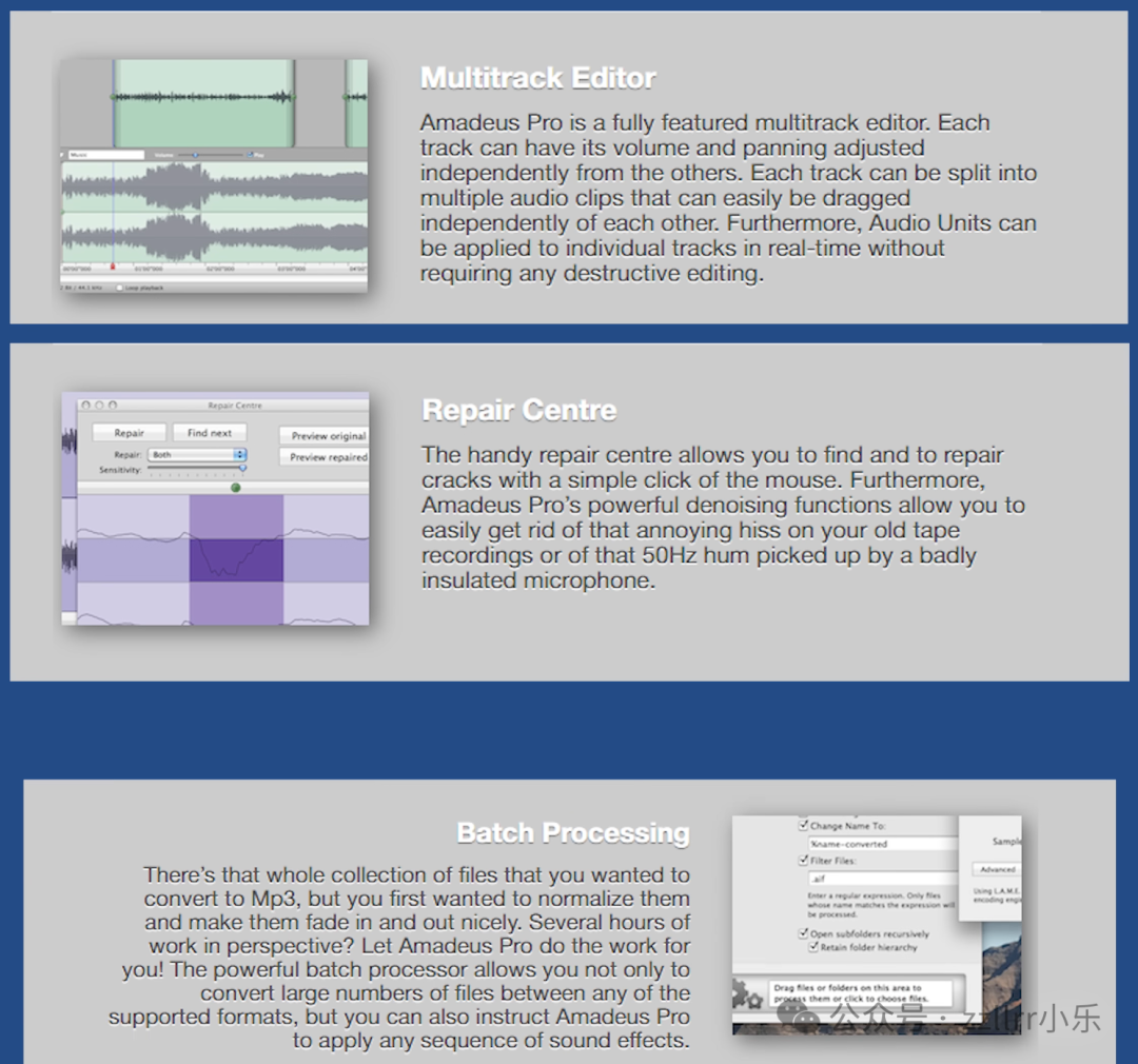 阿玛迪斯是一款适用于苹果Mac电脑的音频编辑软件,它体积轻巧、运行流畅稳定,能让用户直观地查看声波形态,消除老式黑胶唱片中的嘶嘶杂音,还支持音频格式转换。
