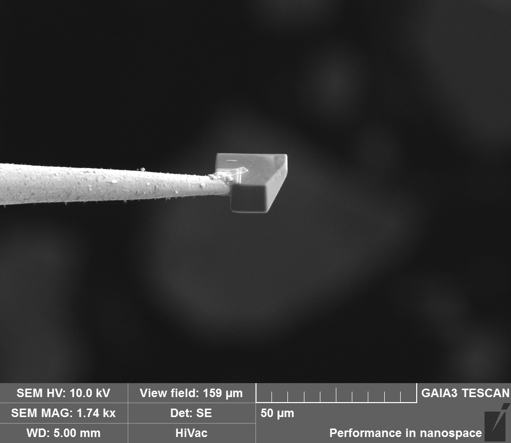 纳米机械手提取镁嫦娥石单晶颗粒