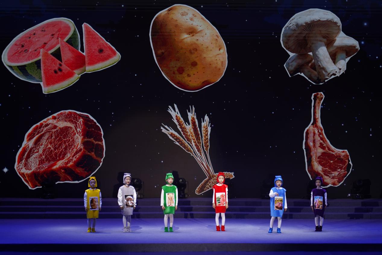 第二篇章以童趣化情景剧为核心,将马铃薯、莜麦、口蘑、麒麟西瓜、草原牛羊肉等张北特色物产拟人化呈现,生动演绎“一粒种子到餐桌美味”的全过程。同时,当地产业代表现场讲述,介绍张北打造盒马村、有机农业园区,打通产销链条,让坝上好物走向全国市场的实践,凸显产业振兴的务实成果。