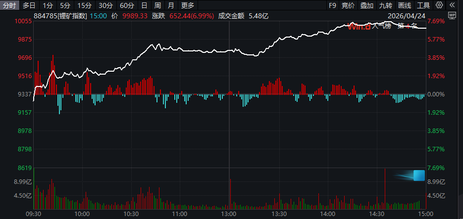 24日,锂矿概念一改昨日低迷走势,板块指数午后持续走高,创下近一年来新高。