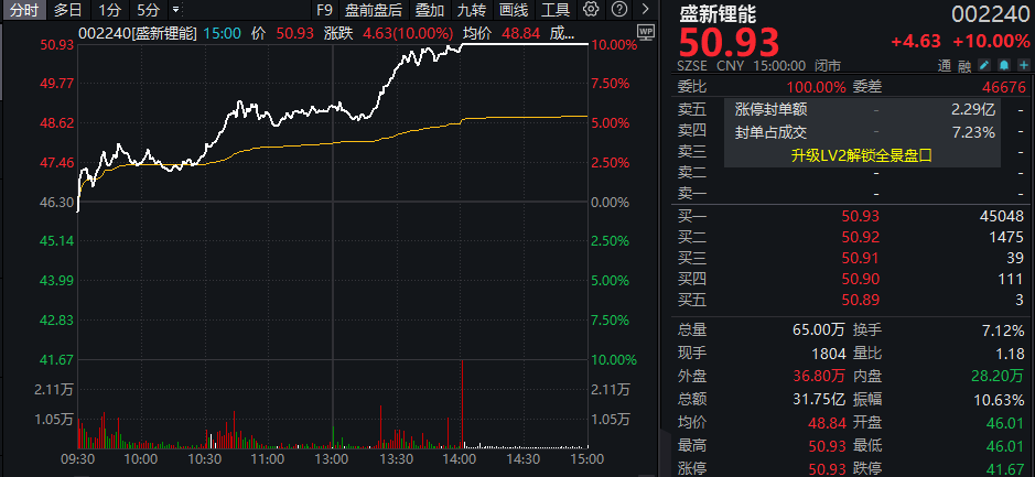 板块内,锂业龙头股盛新锂能午后成功封住涨停,成交额超过30亿元。Wind数据显示,自去年10月初以来,该股区间涨幅超160%。与此同时,永兴材料、金圆股份、江特电机、融捷股份等亦实现涨停,天齐锂业、国城矿业、西藏矿业、赣锋锂业等多股跟涨。