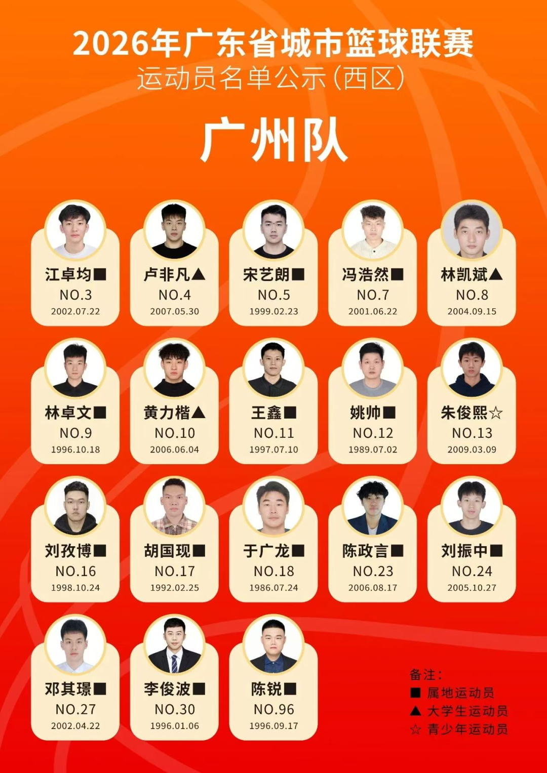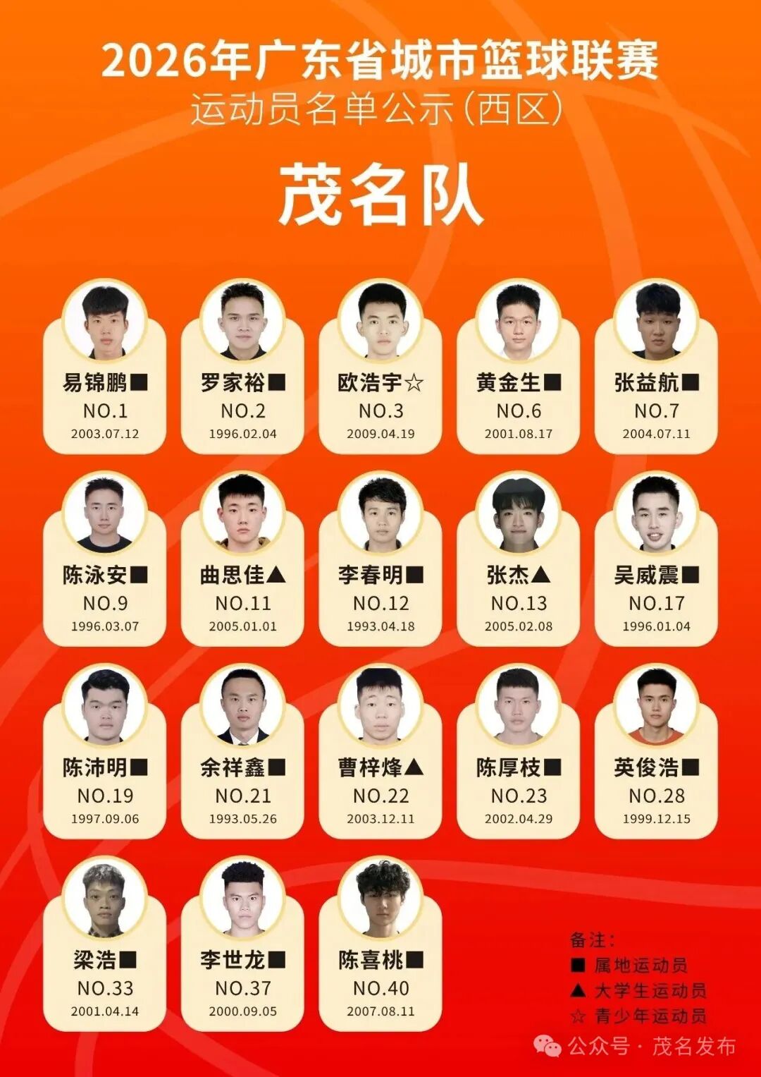茂名队以本土球员为核心班底,同时引进张杰、曹梓烽、曲思佳三名省内高水平大学生球员,阵容结构合理、新老搭配,兼具大赛经验与青春活力。