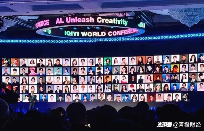 大会现场的大屏幕上,百余位艺人头像整齐排列,营造出“全行业鼎力支持”的氛围,爱奇艺试图借此向市场证明,自己已握住AI时代影视行业的入场券。