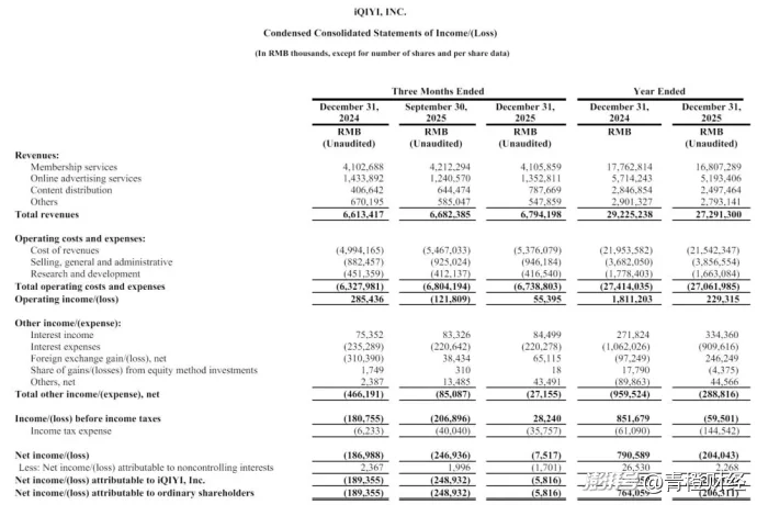 *图源爱奇艺2025年财报