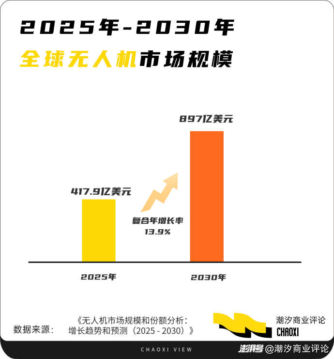 民航局数据显示,2024年底获得无人机运营合格证的单位就有近2万家。另一方面,技术变量正在改变格局——AI让低功耗芯片运行复杂算法成为可能,5G与边缘计算让超视距控制即将成为现实。全球无人机市场规模2025年已达417.9亿美元,远未见顶。