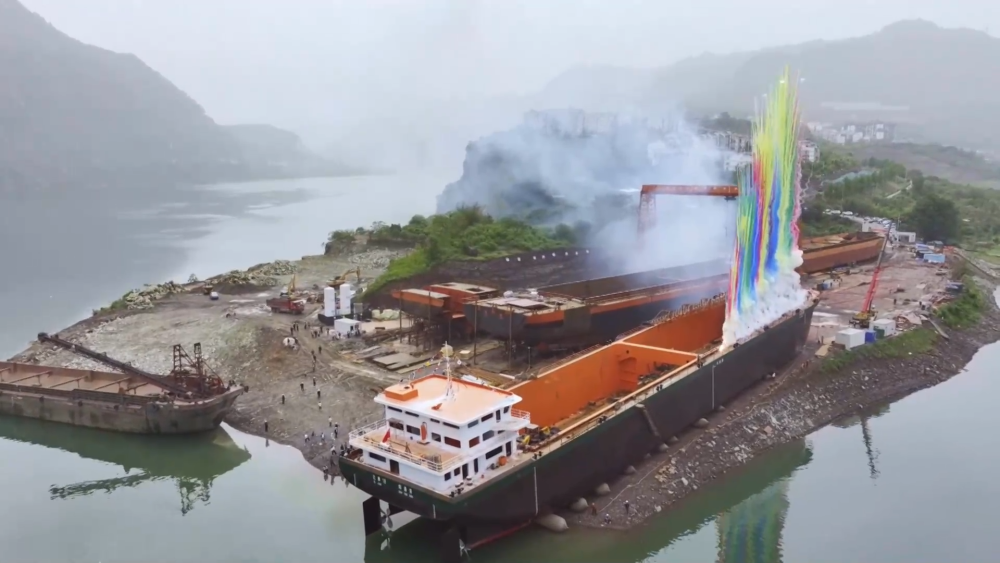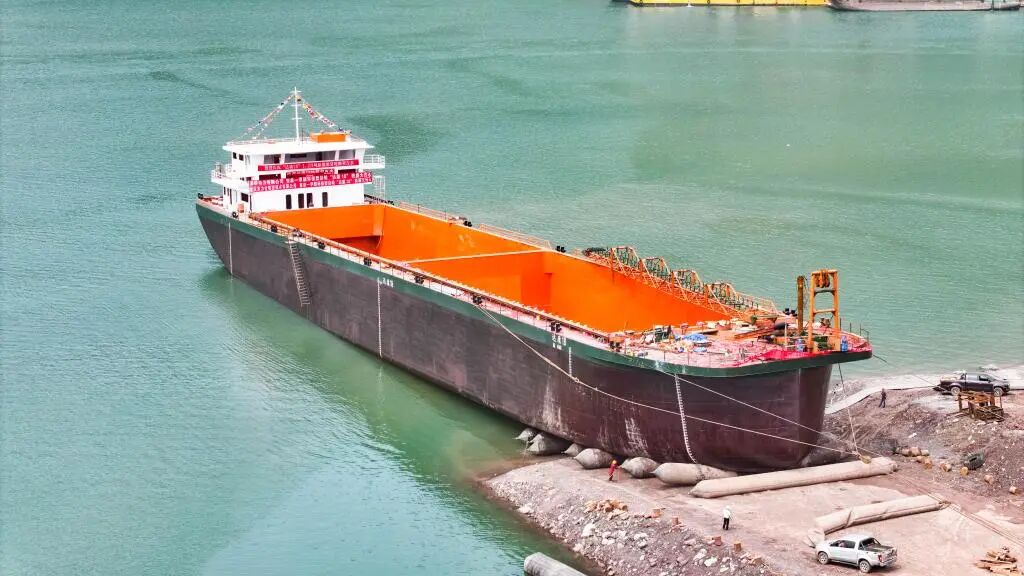 金沙江流域首艘万吨级新能源货轮下水