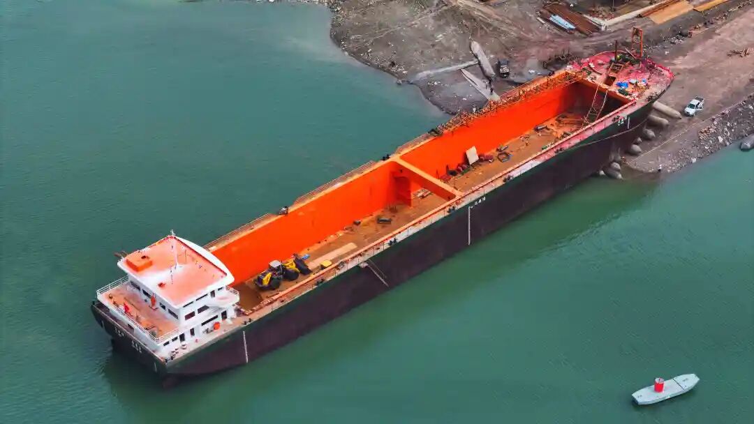该船于2025年5月25日开工建造,船舶总长110米,型宽18.8米,型深8.5米,载货量达12000吨,该船为甲醇新能源船舶,燃料成本相比于传统柴油船舶可节约20%,有效减少二氧化碳和碳氧化物排放,在船体长度优化的前提下,载重量实现翻倍提升,具备装载量大、航行效率高、运营成本低的核心优势,能够更好适配金沙江流域货运需求。