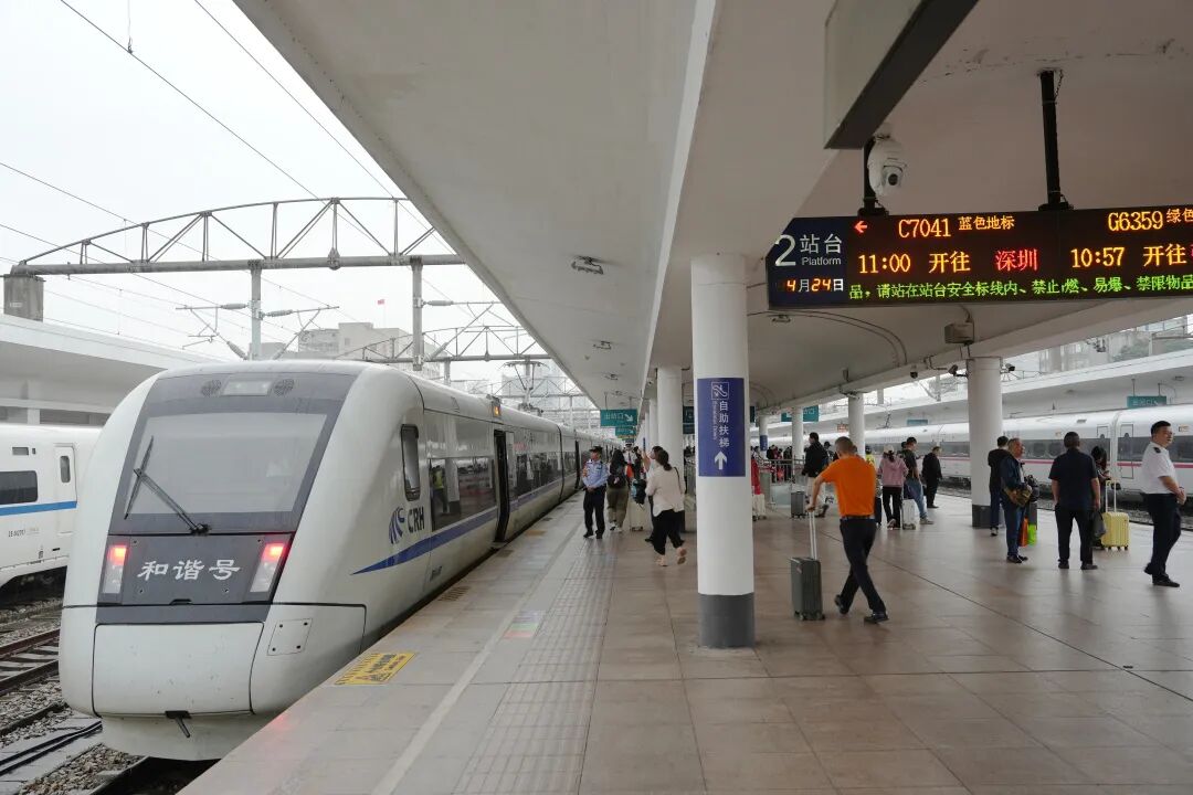 广州东站开行营业列车371列,始发终到动车组217列、中转动车组154列,通达南昌、厦门、上海、福州、香港等热门方向,跨市与跨境出行更为顺畅。