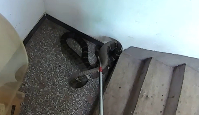 吓人!一居民楼惊现3米长眼镜王蛇!