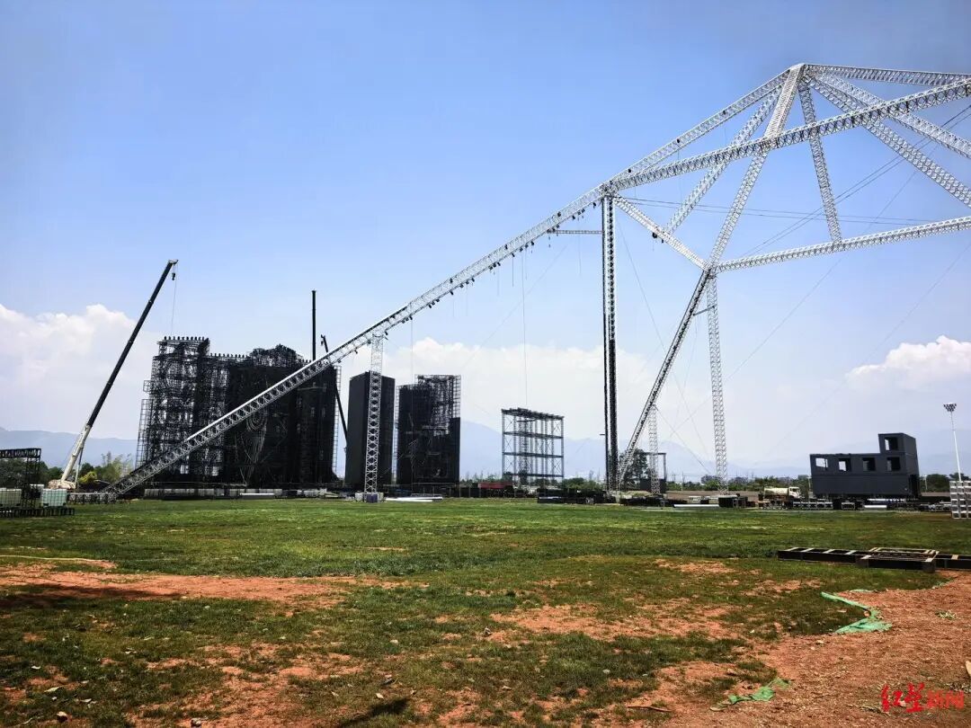 写有“华晨宇专用”的灯光设备即将搬移