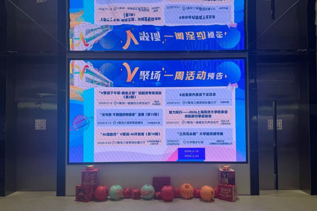 1楼大屏幕可获取一周活动信息,是该空间为入驻创作者提供的专业价值。鲁怡 摄