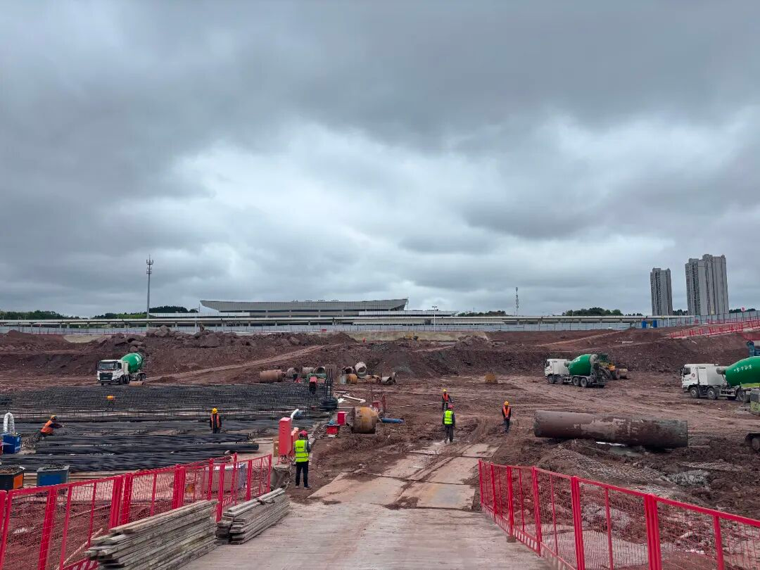 近日,记者来到位于简阳南站附近的简阳空铁综合交通枢纽项目施工现场,各类工序交叉作业、高效推进。简阳市空铁综合交通枢纽建设项目负责人张游介绍,目前土石方开挖完成90%,基坑支护完成95%,1号楼、2号楼桩基完成10%,3号楼桩基完成25%,临建完成100%。计划5月底开始进入主体施工,项目将在2027年建成投入使用。